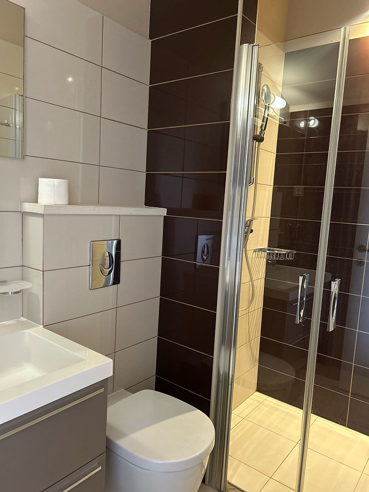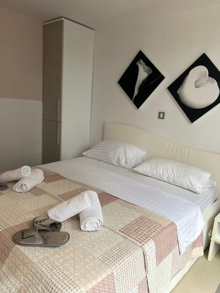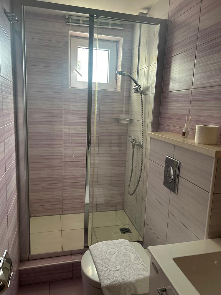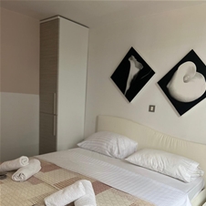 Prostoren apartma v velikosti 75 m², primeren za do 6 oseb. Sestavljata ga dve spalnici – ena z zakonsko posteljo (180 × 200) in druga z dvema ločenima posteljama – ter dve kopalnici in udoben dnevni prostor z raztegljivim kavčem.