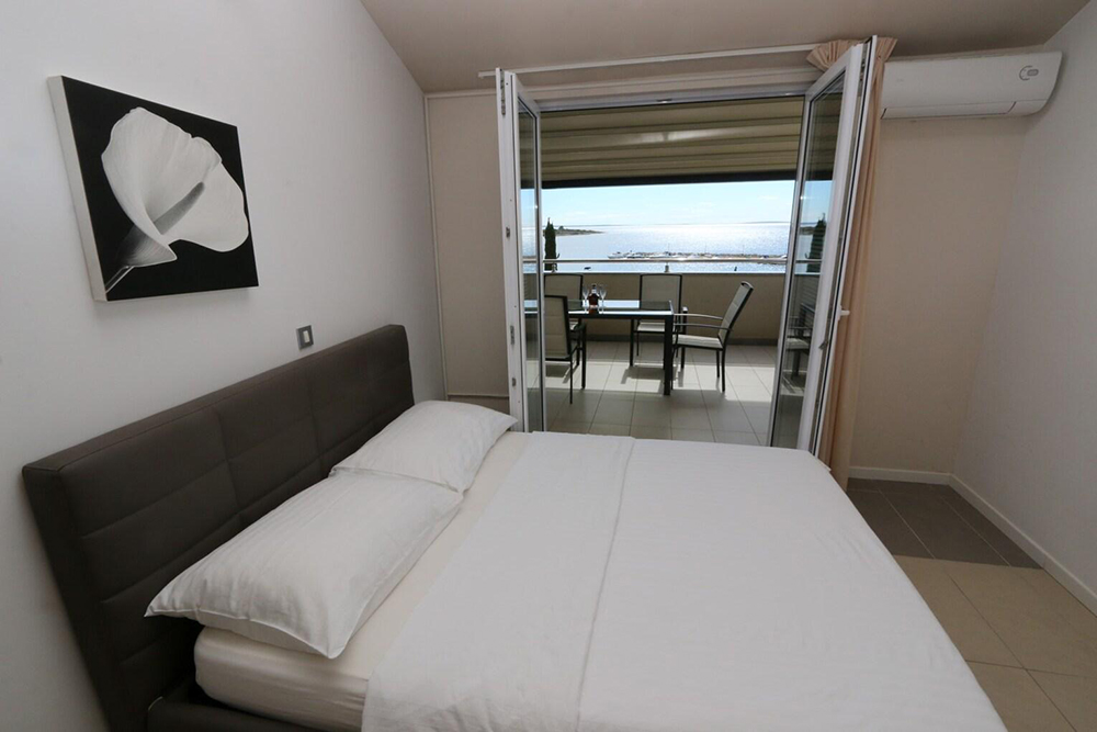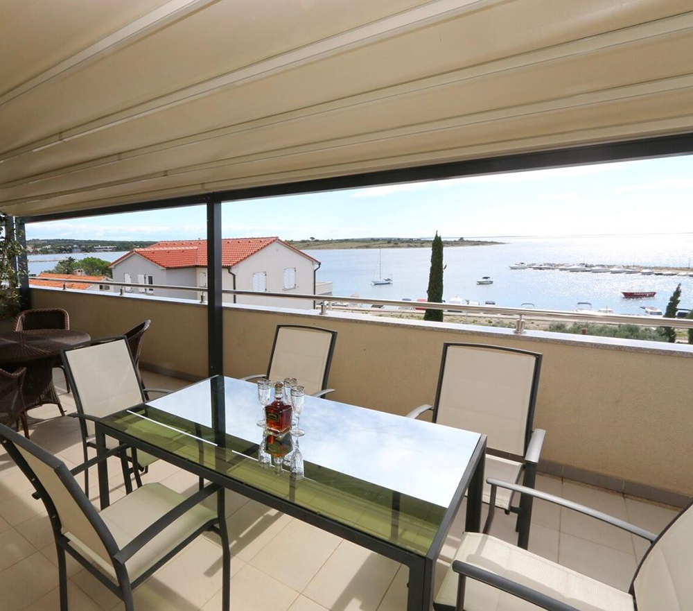 Velik balkon nudi čudovit razgled in je popoln kotiček za sprostitev po dnevu, preživetem ob morju ali ob raziskovanju Novalje.