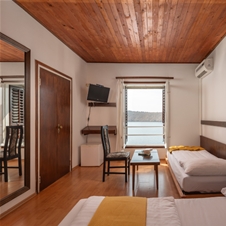 Standard dvoposteljna soba je primerna za bivanje do treh oseb, bližina morja pa zagotavlja osvežilno in prijetno bivanje v vročih poletnih dneh.