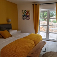 Na voljo je skupno 11 dvoposteljnih in 2 enoposteljni sobi. V prvem nadstropju je 5 sob s francoskimi okni in skupno teraso s pogledom na morje ter 1 soba z balkonom.