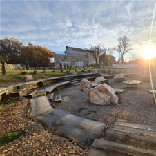 Celoten resort obdaja infinity bazen, prostor za obedovanje, poletni vrt, zunanja finska lesena savna, sončni labirint, osem energijskih točk ter številni skriti kotički za počitek, meditacijo, sprostitev in popoln reset.