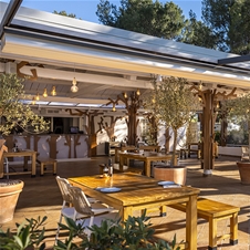 • pokrita terasa s sedežno garnituro za šest oseb in tremi ležalniki