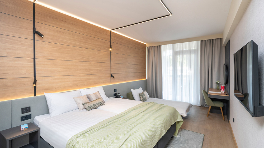 Klasična soba z balkonom in pogledom na park je velika približno 25 m in ima dve enojni postelji ter kopalnico s tušem ter sušilcem za lase. Na voljo je SAT TV, direktna telefonska linija, WiFi ter klimatska naprava. Soba ima možnost 1 pomožnega ležišča.