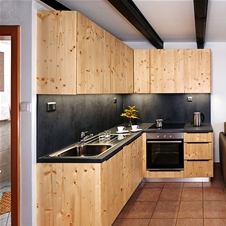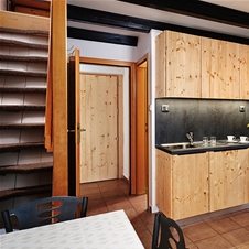 Bungalov ima v pritličju dnevni prostor z raztegljivim kavčem, opremljeno kuhinjo in jedilno mizo, kopalnico s tušem. V zgornjem nadstropju pa sta na voljo dve spalnici s pod dvema ležiščema. Na voljo je televizor, telefon in internet.