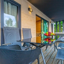 Sodobne prefinjene mobilne hiške Adrialux naredijo odmik od vsakdanjega življenja še boljši. Vsebujejo dve spalnici, dve kopalnici in dnevno sobo s kuhinjo ter teraso 25 - 30 m2. S svojo brezčasno zunanjostjo in notranjostjo ne pusti ravnodušnih niti najzahtevnejših. Na pokriti terasi je zunanji bivalni prostor, obdan s stekleno ograjo. Tla so izdelana iz profiliranega sibirskega macesna, vse v minimalističnem slogu.