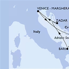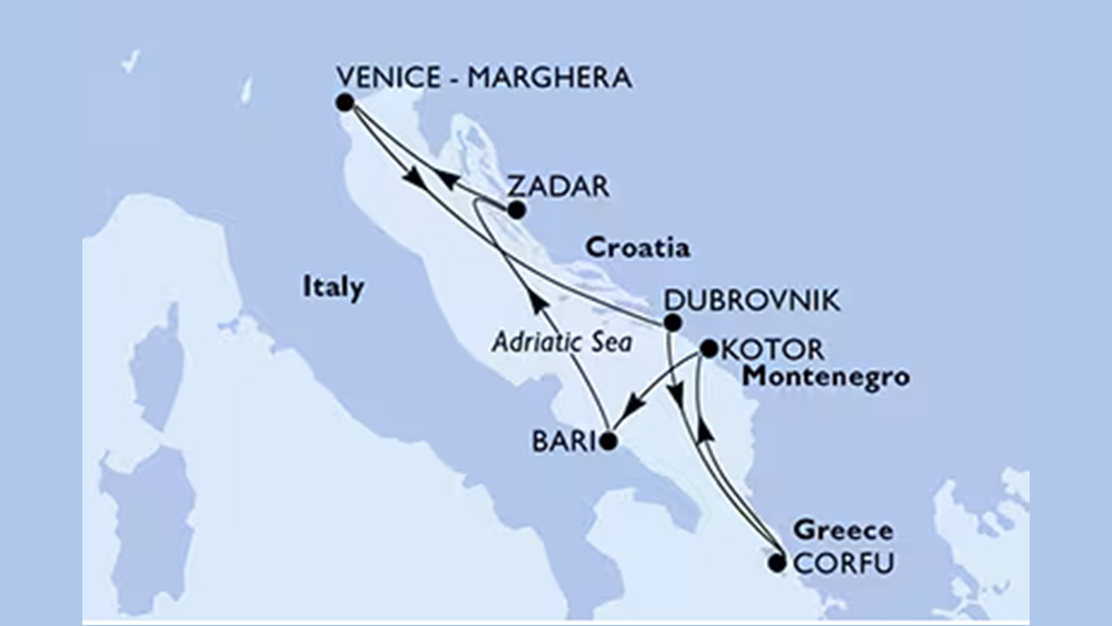 - Ponudba vsebuje: 8-dnevno skupinsko križarjenje z ladjo MSC Opera Benetke-Dubrovnik-Krf-Kotor-Bari-Zadar-Benetke za 1 osebo: