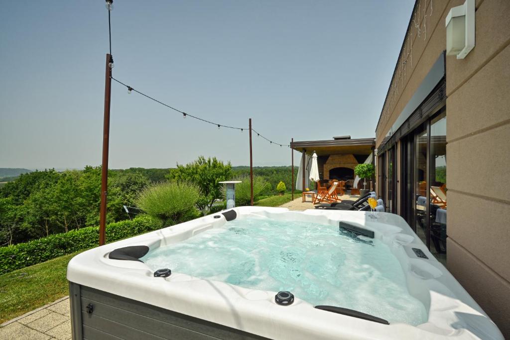 Oddih z razgledom! SUPER CENA za najem luksuzne počitniške hiše Divinus Holiday House 4* v Mariji Bistrici: 2x nočitev za do 5 oseb + uporaba notranjega bazena + uporaba IR savne + uporaba zunanjega hidromasažnega jacuzzija + končno čiščenje + Wi-Fi in parking!