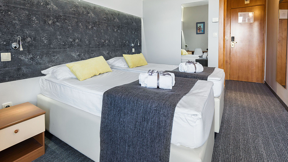 Standard soba z balkonom ima posteljo z dvema ležiščema ter opremljeno kopalnico s tušem in sušilnikom za lase. Na voljo je LCD TV, internet, telefon, sef, minibar, mizica ter klimatska naprava. Soba ima možnost 1 pomožnega ležišča.