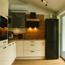 Njihov dom – in zdajšnji apartma – ima korenine, globoko zasidrane v leto 1935, ko je dedek Stanislav tukaj začel graditi hišo. Z rokami, znanjem in vizijo. Bil je kolarski mojster, ki ni ustvarjal le vozov in orodja, temveč tudi prve lesene avtomobile v teh krajih. Njegova predanost detajlu, ustvarjalnosti in lesu se je prenašala iz roda v rod. Oče Jože je nadaljeval to ustvarjalno pot – kot mizarski mojster je v tej hiši postavil svojo delavnico, kjer je les ponovno zaživel v obliki pohištva, stopnic, oken – vsega, kar diši po kakovosti, trajnosti in domačnosti.