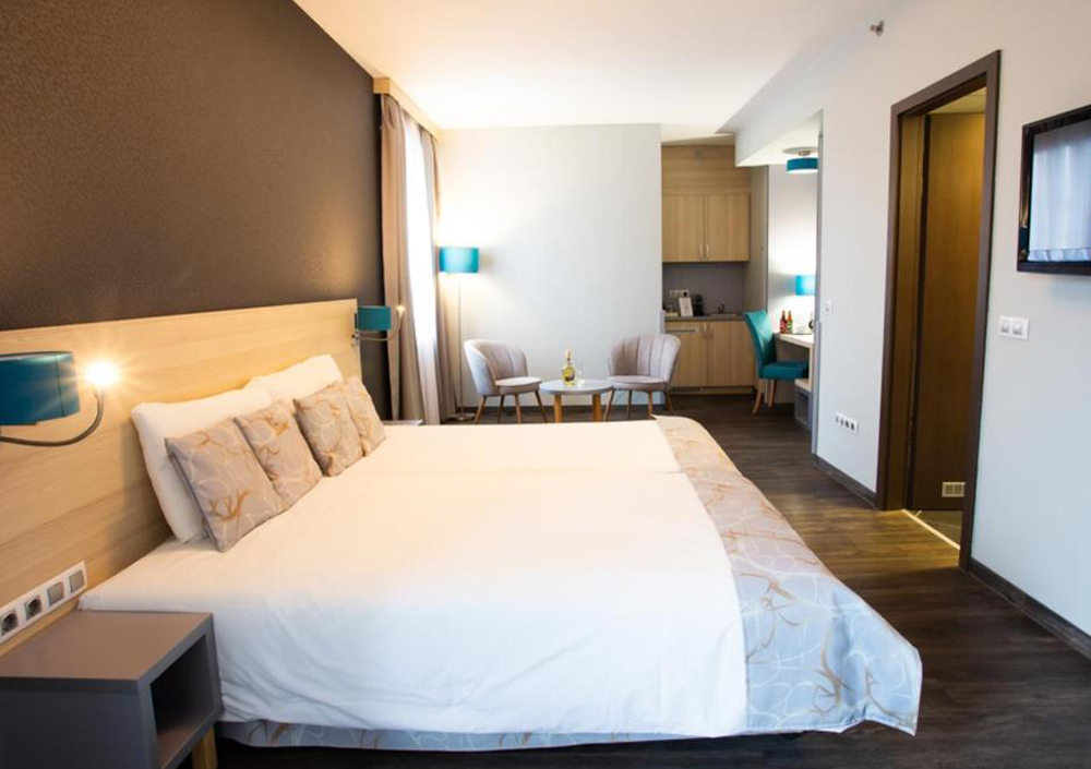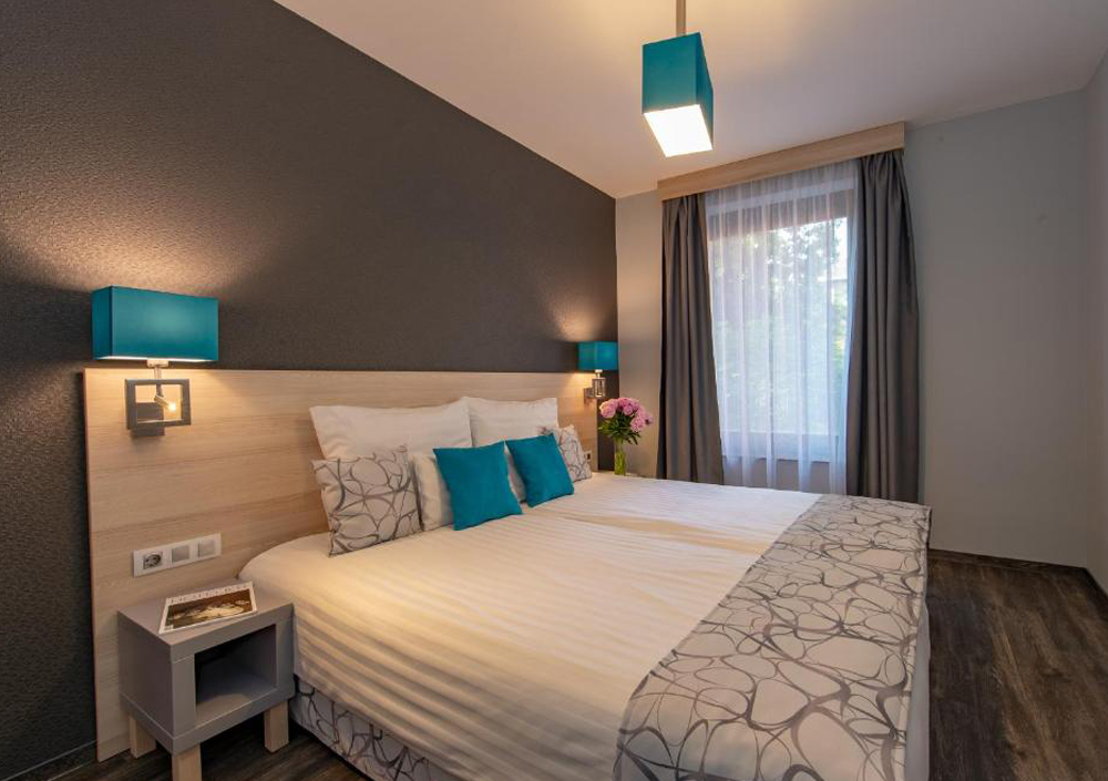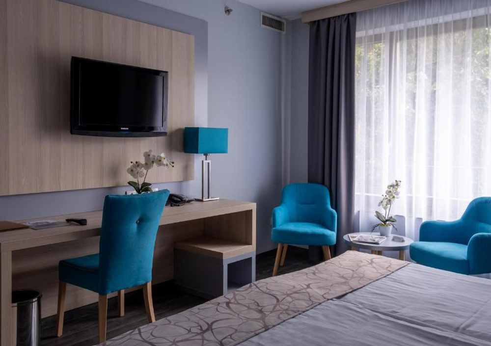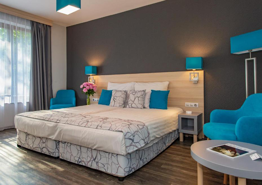 Sobe so bile pred kratkim prenovljene in imajo parketna PVC tla ter svetlejše, elegantno opremljeno pohištvo in stene. Sobe merijo vsaj 25 kvadratnih metrov. Sobe imajo zakonsko posteljo, 2 fotelja in klubsko mizico ter pisalno mizo s stolom. V sobi je tudi ogromna garderobna omara. So svetle zaradi velikega okna s pogledom na notranje dvorišče. Kopalnica ima kad, ki je zaradi steklene pregrade primerna tudi za prhanje. Soba ima dve postelji velikosti 100 x 200 centimetrov, ki ju je mogoče uporabiti kot zakonsko posteljo ali kot enojni postelji.