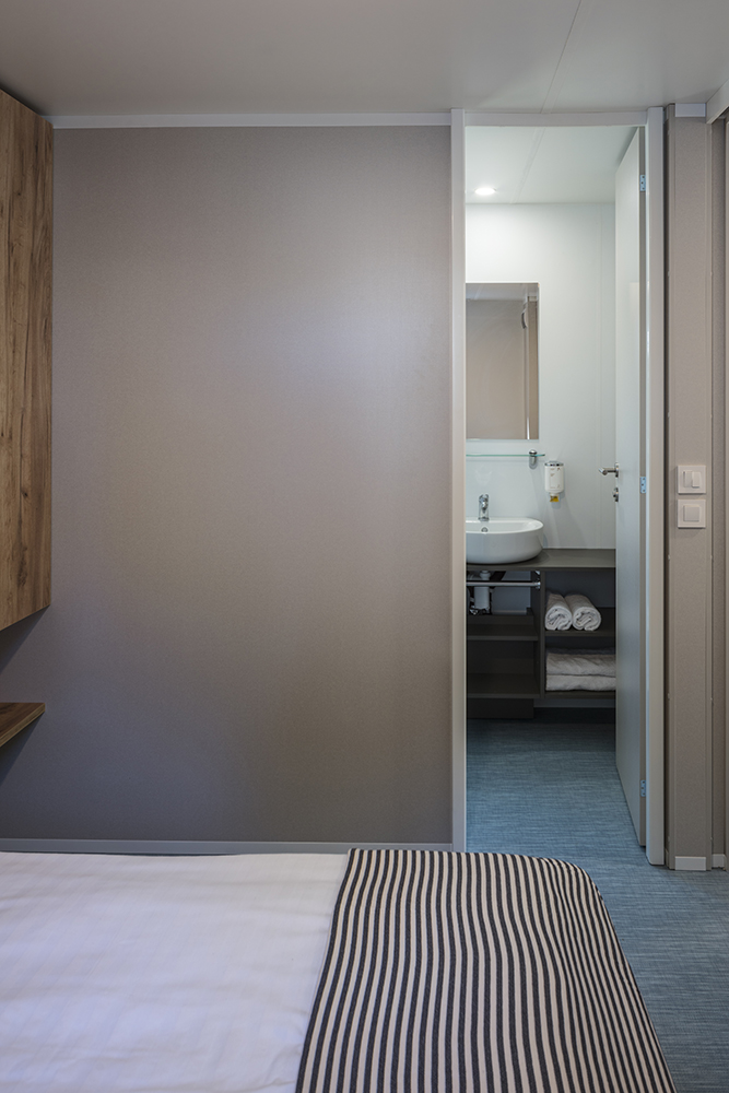 ima površino 30 m² in sprejme do 3 osebe. Opremljena je z zakonsko posteljo (200 x 160 cm), dnevnim prostorom z ambientno razsvetljavo, Bluetooth sistemom z vgrajenimi stropnimi zvočniki, manjšo kuhinjo s štedilnikom, hladilnikom, pomivalnim koritom in pomivalnim strojem ter raztegljivim kavčem (190 x 70 cm) za enega otroka. Kopalnica je ločena in vključuje WC, tuš in umivalnik, na voljo pa je tudi zunanja terasa.