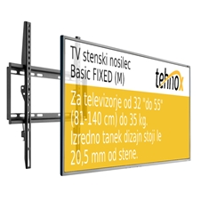 - Ponudba vsebuje: 1x kvaliteten TV nosilec Basic FIXED (M). Priporočena velikost zaslona M (81-140 cm / 32-55"), največja obremenitev do 35 kg.
