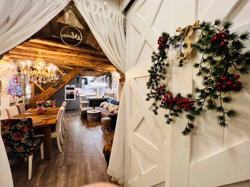 Počitniška hiša Čarolija ponuja udobje in toplino doma: obsega prostorno dnevno sobo s kaminom, popolnoma opremljeno kuhinjo, jedilnico, kopalnico ter teraso z zunanjim pohištvom. V nadstropju se nahajajo štiri prijetne spalnice, idealne za sprostitev in miren počitek.
