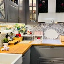 Kuhinja je popolnoma opremljena s posodo, priborom, osnovnimi začimbami in vsemi sodobnimi aparati: indukcijsko ploščo, napo, grelnikom za vodo, tosterjem, hladilnikom z zamrzovalnikom, pečico, mikrovalovno pečico, kavnim aparatom in pomivalnim strojem.