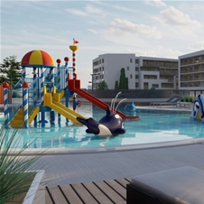 Na voljo je zunanji kompleks bazenov na različnih ravneh, s slapovi in različnimi vodnimi atrakcijami s sladko vodo in zunanji otroški bazen s sladko vodo. Otroci se bodo zabavali tudi v vodnem parku s tobogani in igriščem s sladko vodo, kjer se lahko okrepčate v Snack baru.
