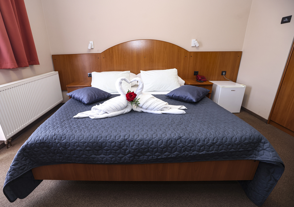 V prijetnem hotelu Zagi si lahko odpočijete in prenočite v eni od 60 moderno opremljenih sob. Opremljena je z veliko zakonsko posteljo in dvema ležiščema širine 90 cm ter sistemom Smart room.