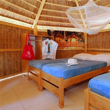 Bungalov je narejen iz naravnih materialov, ki so optimalno umešani v naravni borov gozd. Brez električnih instalacij in pretiranega vpliva na okolje bungalovi nudijo idealno priložnost, da pobegnejo iz sodobnega sloga in življenjskega ritma v nekaj naravnega in drugačnega. V bungalovu so na voljo 5 ločenih postelj, posteljnina in mreža za komarje tri manjše omare.