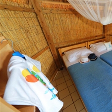 Bungalov je narejen iz naravnih materialov, ki so optimalno umešani v naravni borov gozd. Brez električnih instalacij in pretiranega vpliva na okolje bungalovi nudijo idealno priložnost, da pobegnejo iz sodobnega sloga in življenjskega ritma v nekaj naravnega in drugačnega. V bungalovu sta na voljo dve ločeni postelji, posteljnina in mreža za komarje ter dve manjši omari.