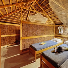 Bungalov je narejen iz naravnih materialov, ki so optimalno umešani v naravni borov gozd. Brez pretiranega vpliva na okolje bungalovi nudijo idealno priložnost, da pobegnejo iz sodobnega sloga in življenjskega ritma v nekaj naravnega in drugačnega. V bungalovu so 3 ločene postelje, posteljnina in mreža za komarje ter tri manjše omare. Bungalov ima elektriko - USB, notranja osvetlitev, WiFi.
