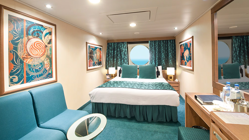 Površina zunanje kabine z oknom je od 15-17 m2. Kabine nudijo zakonsko posteljo, ki se lahko pretvori v dve ločeni ležišči, kopalnico s tušem in wc, interaktivno televizijo, možnost uporabe interneta (doplačilo po ceniku), telefon, mini bar in sef. Imajo možnost 2 pomožnih ležišč. Zunanje kabine z oknom so v zlati sredini. Nudijo odlično razmerje med ceno in udobjem. Nahajajo se na prvih palubah namenjenim gostom.