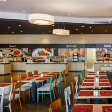 Na voljo je polpenzion v restavraciji hotela s svežimi sezonskimi jedmi in večerja po izbiri kuharja (samopostrežni bife po izbiri kuharja ali fiksni 3-hodni menu) ter vključena pijača iz avtomata ob večerji (belo in črno vino, pivo, voda in sokovi). Ob doplačilu je na voljo tudi restavracija Vista, lobby bar, kjer boste uživali v koktajlih, kavi ali prigrizkih. Ob doplačilu je na voljo tudi Pool Bar & Grill, kjer si lahko privoščite pico in jedi z žara.