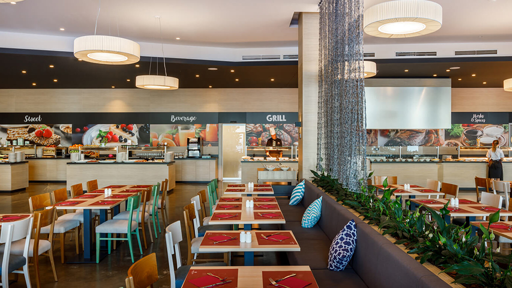 Na voljo je polpenzion v restavraciji hotela s svežimi sezonskimi jedmi in večerja po izbiri kuharja (samopostrežni bife po izbiri kuharja ali fiksni 3-hodni menu) ter vključena pijača iz avtomata ob večerji (belo in črno vino, pivo, voda in sokovi). Ob doplačilu je na voljo tudi restavracija Vista, lobby bar, kjer boste uživali v koktajlih, kavi ali prigrizkih. Ob doplačilu je na voljo tudi Pool Bar & Grill, kjer si lahko privoščite pico in jedi z žara.