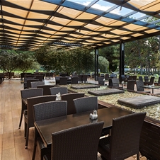 Zajtrk in večerja sta na voljo v samopostrežni restavraciji, ob večerji je na voljo tudi pijača: sok, voda, namizno belo in rdeče vino, točeno pivo.