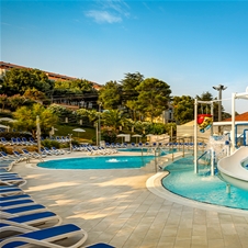 Na voljo sta dva zunanja bazena, eden od njih je otroški bazen s toboganom. Glede na razpoložljivost so na voljo ležalniki in senčniki.