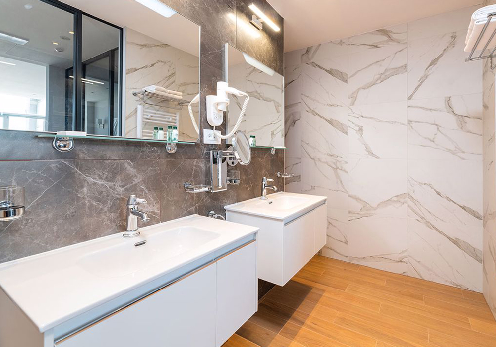 Dvoposteljne sobe so harmonično in svetlo opremljene ter vam nudijo sproščeno vzdušje za prijetno počutje. Opremeljene so z zakonsko posteljo ali dvema enojnima posteljama, delovnim prostorom, nekatere imajo udoben prostor za sedenje, sef za prenosni računalnik, TV z ravnim zaslonom, radio, budilko, WiFi, tuš ali kad, stranišče, kozmetično ogledalo in sušilec za lase.