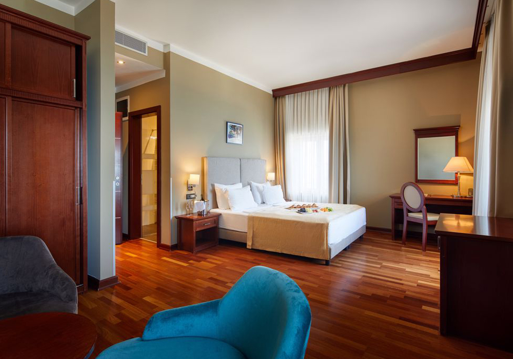 Dvoposteljne sobe so harmonično in svetlo opremljene ter vam nudijo sproščeno vzdušje za prijetno počutje. Opremeljene so z zakonsko posteljo ali dvema enojnima posteljama, delovnim prostorom, nekatere imajo udoben prostor za sedenje, sef za prenosni računalnik, TV z ravnim zaslonom, radio, budilko, WiFi, tuš ali kad, stranišče, kozmetično ogledalo in sušilec za lase.