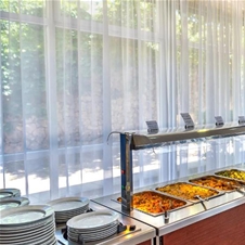 Na voljo je all inclusive ponudba s samopostrežnim zajtrkom, kosilom, popoldansko malico in večerjo; na voljo so tudi vegetarijanske in veganske možnosti. Na voljo so tudi brezalkoholne in alkoholne pijače.