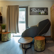 Prijeten prostor s posteljo, masažno kadjo, masažnim stolom in infrardečo savno. Savna bo prispevala k čiščenju in pomlajevanju telesa in duha, vrhunski masažni stol ponuja prilagojene masaže telesa, za popoln masažni občutek pa lezite še v masažno kad. Počitek zagotovi prijetna in udobna postelja.