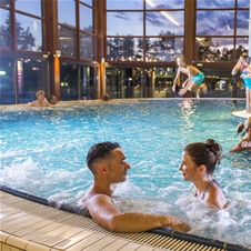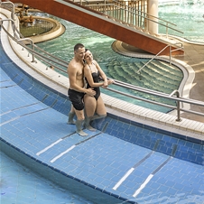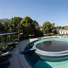 Obiščite termalni park z notranjim bazenskim delom v dveh nadstropjih in savnami ter zunanjim bazenskim delom z adrenalinskimi in družinskimi tobogani. Termalni park nudi popolno vodno zabavo v 11 bazenih in kopelih na več kot 3.000 m2 površine.