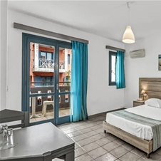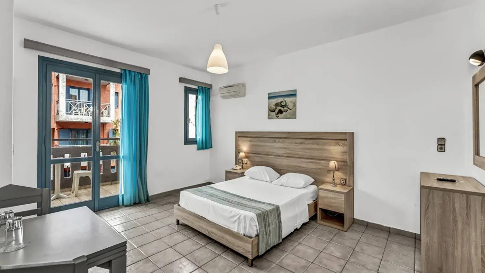 Dvoposteljna soba ima zakonsko posteljo ali posteljo z ločenima ležiščema. Opremljena je s klimatsko napravo, kopalnico z wc-jem, sušilcem za lase, telefonom, sat-tv. Soba ima balkon ali teraso. Soba ima možnost 1 pomožega ležišča.