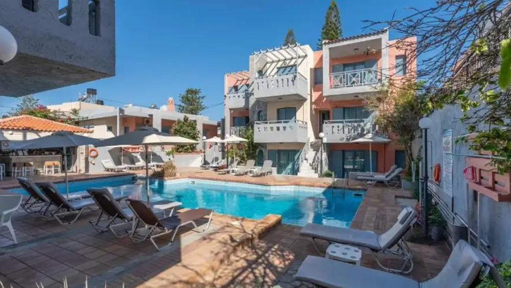 Hotel se nahaja približno 11 km do glavnega mesta Heraklion. Pred hotelom je javna avtobusna postaja z dobrimi povezavami. V bližini hotela je veliko kavarn, barov, tavern, restavracij in trgovinic.